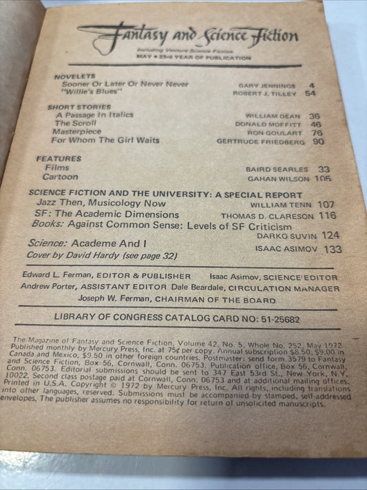 The Magazine of Fantasy & Science Fiction May 1972 Ron Goulart Gary Jennings