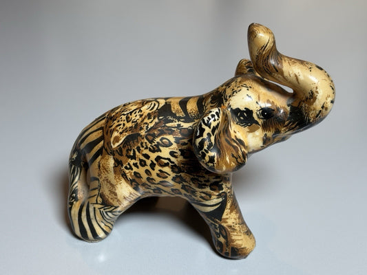 Vintage Collage La Vie Safari DéCoupage Patchwork Standing Elephant-Animal Print